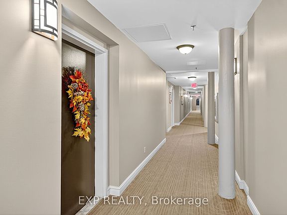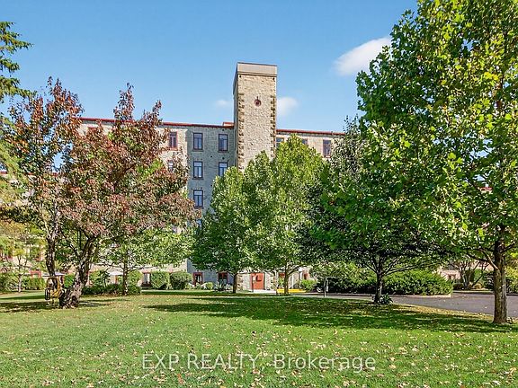 Welcome to Unit 408 at Millfall Condominium. This stunning one-bedroom plus den, one-bath suite faces west, offering beautiful views of the Mississippi River. Kitchen is a chefs dream, featuring a spacious wood-topped island with ample seating, stainless steel appliances, granite countertops, and a full wall of built-in dining cabinetry. Open-concept dining and living area allows for flexible layouts, highlighted by engineered hardwood floors, soaring 10-foot ceilings, and sunsets framed by large windows. A sleek electric fireplace adds warmth and charm to the living room. Primary bedroom is designed with a full wall of closet space, while the versatile den makes a perfect office, craft room, or guest nook. Life at Millfall extends beyond your condo walls. Residents enjoy beautifully landscaped grounds along the river, complete with kayak storage, a gazebo for social gatherings and barbecues, and ample parking for both owners and guests. Originally a bustling textile mill in the 1800s, this heritage building was thoughtfully converted to condos in 1985, preserving its historic character. Today, Millfall offers exceptional amenities, including an exercise room, workshop, library, recreation room, storage lockers, and a guest suite available to rent. For those who love to explore, downtown Almonte is just a short stroll away, filled with cafés, restaurants, and unique boutiques. Outdoor enthusiasts will appreciate the nearby Ottawa Valley Recreational Trail. Discover for yourself why Millfall is such a vibrant, welcoming community - there's truly something here for everyone.