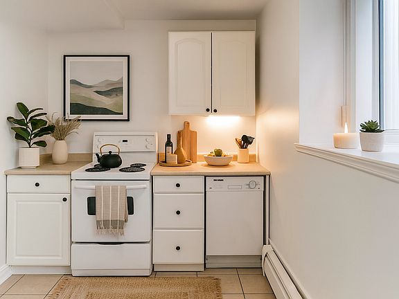 Trendy retro-inspired brick buildingSpacious layoutsRenovated cherry cabinet kitchensLarge bright windowsCharm and functionality