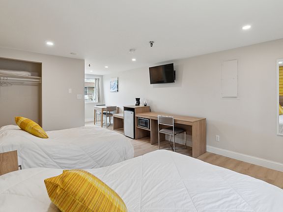 All rooms come with 2 full beds. All rooms have kitchenettes, TV and wifi. All utilities included.