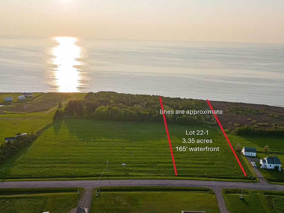 Discover your private retreat on the west side of picturesque PEI. Lot 22-1 offers 165 feet of waterfront and 3.35 acres, providing plenty of space for privacy and enjoyment. Perc-tested as a category 2, this lot is located on a year-round paved road, making it ideal for building your dream property. Enjoy stunning sunsets, serene views, and endless activities on one of the most beautiful beaches on PEI. Swim, host bonfires, or take a peaceful walk to nearby Skinners Pond Beach/Harbor, home of the famous Stompin Tom Connors, just a 3-minute drive away. If you prefer direct beach access, stairs can be installed on your 24-foot cape, or use the nearby public access road within walking distance. Looking for more space? Adjacent Lot 22-2 (3.68 acres) and Lot 22-3 (3.73 acres) are also available. The sellers are willing to offer a better price for buyers interested in purchasing multiple lots. Dont miss the chance to own your piece of paradise.