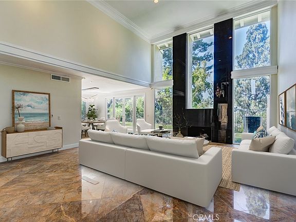 Leave beautifully inside the Gated Guarded Big Canyon on a large corner lot with a premium location influenced by a renowned on golf course area. Entering the home through the exterior gate and walking through the atrium gives a feeling of luxury even before you enter the custom glass front doors. Marble floors reflect tall ceilings from the abundant natural light flowing in from the floor to ceiling windows. The living room flows into the formal dining room adjacent to a modern kitchen with gourmet appliances. Wide open views from all angles show the pool, spa and BBQ , Fire Pit in spacious back and side yards. With one bedroom on the main floor and the other three on the second level, the home is versatile in how they can be used. Fashion Island, with its upscale amenities is basically across the street and the famous beaches and harbors are right down the road making this home a great abode to experience the best in coastal living and all its aspects. property with new paint, new Modern custom chandelier, BBQ Island, firepit and Three hole putting green,