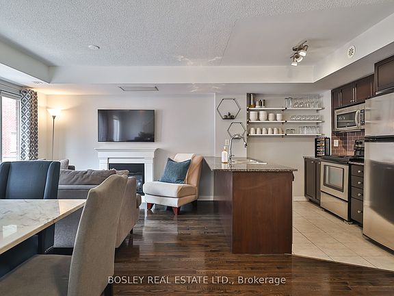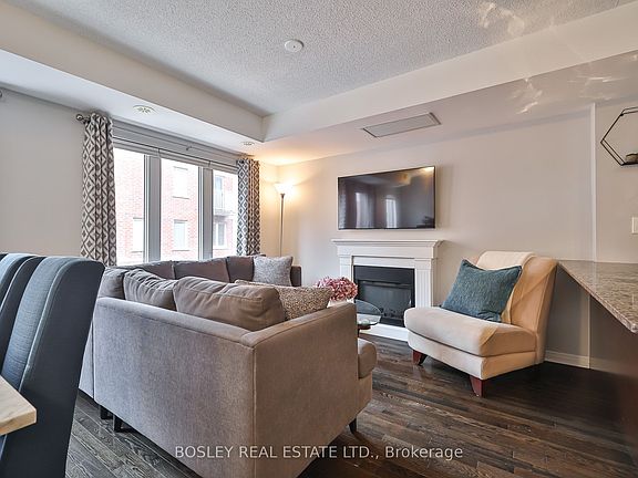 Welcome to Brownstones on Bloor, just steps from the vibrant Junction Triangle. This bright and spacious 2+1 bedroom townhouse offers modern finishes, smart design, and exceptional convenience. The open-concept main floor features hardwood flooring throughout, fireplace, ensuite laundry, a 2-piece powder room, and a contemporary kitchen with granite countertops and a breakfast bar. Upstairs, you'll find two well-appointed bedrooms and a 4-piece bathroom. The large principal suite includes a walk-in closet and a private balcony. The versatile third-floor loft features upgraded flooring and a custom built-in Murphy bed, ideal for use as a guest room, office/media space, or workout area. A generous rooftop terrace with a gas BBQ line and water bib provides the perfect outdoor setting for gardening, relaxing, or entertaining. Enjoy the convenience of one dedicated parking space and access to fantastic condo amenities, including an outdoor pool and visitor parking. Location offers quick transit options with TTC subway, the UP Express for fast access downtown or to the airport, the GO Train, plus an array of nearby restaurants, cafes, and breweries.