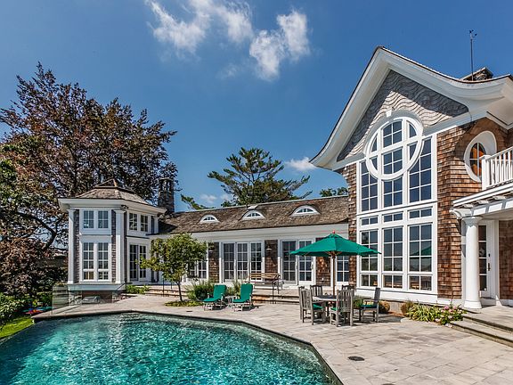 Dramatic views of Long Island Sound & beyond from this custom shingle style home. Stunning floor to ceiling windows large open living spaces and private bedrooms all with own bath take advantage of the open water views from almost every room. The double story living room w/cherry paneled fireplacehexagon breakfast room & second floor pool room w/gallery are some of the distinctive architectural spaces. Neighborhood Homeowners' Association members enjoy Greyrock beach and mooring privileges