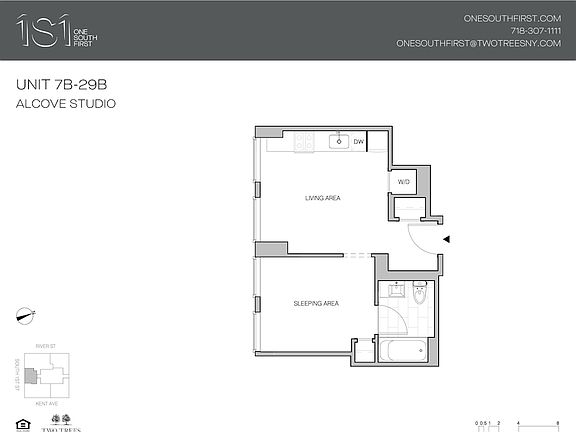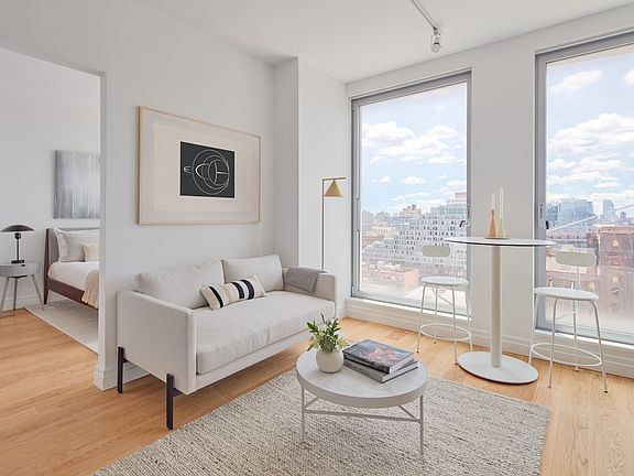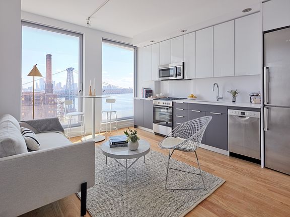 *NOW OFFERING: 1 MONTH FREE ON 12 MONTH LEASE* Sun-flooded south-facing alcove studio with separate sleeping area and massive floor-to-ceiling windows encompassing spectacular views of the East River, Downtown Manhattan, Domino Park, and Williamsburg Bridge.