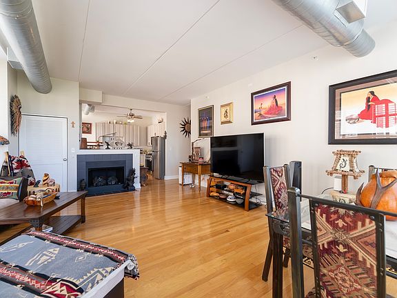 A lovingly maintained 2 bed, 2 bath corner unit at the Metropolis Place in the heart of downtown Arlington Heights. Conveniently located just steps away from the Metra, restaurants, entertainment, shopping, farmers market, Arlington Heights Memorial Library and local events; with easy access to I-90 and I-290. Experience seamless living with an open concept living room, dining room, and kitchen - the perfect floor plan for entertaining and everyday living. This corner unit boasts two stunning walls of floor-to-ceiling windows in the living room, with plantation shutters for added privacy. Enjoy beautiful sunsets and soft light throughout the day with a western and northern exposure. Recently remodeled in 2024, the kitchen features stainless steel appliances, a stainless steel apron sink, matching quartz countertops and backsplash and shaker-style cabinets. Adjacent to the kitchen is the balcony; a quaint outdoor space for grilling, container gardening, or simply enjoying some fresh air. Rest and relax in the master bedroom with floor-to-ceiling windows, recently remodeled custom dual closets, and an ensuite bathroom featuring a glass door shower/tub combo and newer Kohler toilet and shower head. A second bedroom, full hallway bathroom with a glass door walk-in shower, and laundry closet completes the unit. Timeless hardwood floors and 10ft ceilings throughout. Additional updates include: newer HVAC (2024), newer fireplace box (2024), new bedroom ceiling fans (2025) and new closet doors throughout (2025). Larger indoor storage unit is included. Attached parking garage with assigned parking spaces available for $40 per month per car. Building amenities include elevator access, a secured lobby area and mail receiving room.