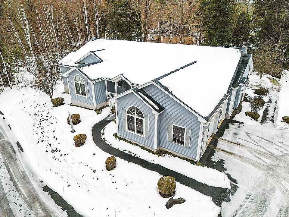 Spacious and well-crafted 3-bedroom, 2.5-bath contemporary ranch located in the desirable South Ridge Estates neighborhood of Winslow. Set on a private, wooded lot, this home features an open and bright floor plan with an oversized living room, cathedral ceilings, and gas fireplace. The kitchen offers abundant cabinetry, counter space, and a separate pantry, opening to the dining area. Quality craftsmanship throughout, including hardwood floors, custom windows and blinds, and a mudroom/laundry combination. Glass door leads to the back deck overlooking well-maintained lawns and seasonal flowering trees. Lower level includes a quiet bonus room with interior and exterior access, ideal for office or retreat space, plus a clean, dry basement with ample storage. Standby generator and two full-size oil tanks. Exceptionally maintained by the original owner and ready for its next chapter.