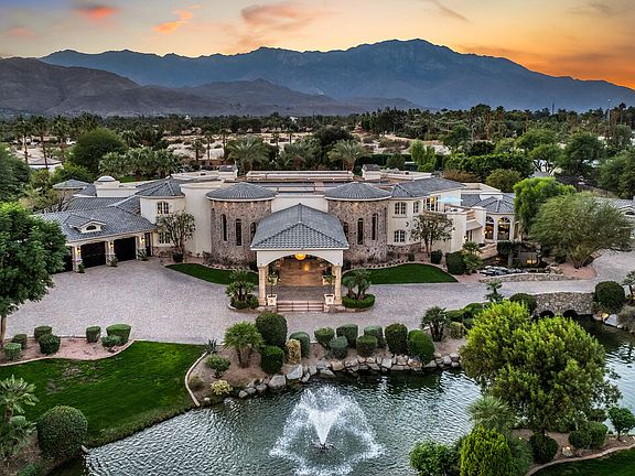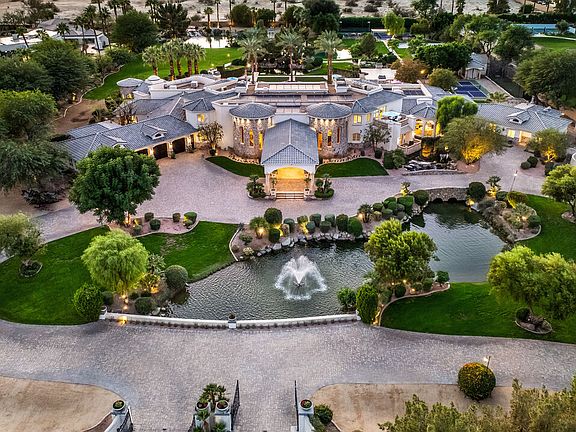 Luxury Live Auction! Bidding to start from $10,000,000! Buyers do not need to wait for auction date to submit an offer to stop the auction - loan or cash. Introducing the Exquisite Chateau Dumont. A One-of-a-Kind Resort Compound in Rancho Mirage. Experience the ultimate in desert luxury at this resort-like private estate, a true family sanctuary situated on nearly five acres in the heart of Rancho Mirage. Privately gated with a double drive entry and porte-cochere, this grand Mediterranean-style compound spans over 18,000 square feet of pure elegance and sophistication. Enjoy breathtaking mountain, lake, and garden views from every corner of the property. The estate offers 15 bedrooms, 13 bathrooms, plus an office, including a two-bedroom, two-bath detached guest house with full amenities. Inside, a dramatic Great Room welcomes guests with expansive living and entertaining areas, a custom bar, wine tasting room, formal dining lounge with fireplace, home theatre, and a billiard parlor/game room. The chef's gourmet kitchen with gourmet professional appliances and separate butler's prep kitchen make hosting effortless. Additional features include a gym, elevator, and garage space for up to five vehicles. The primary retreat features a sitting area with fireplace, built-in office, wet bar, and large walk-in closet with organization and ample storage, with French doors leading to covered lanai with misting system. The spa-inspired primary bath features a domed skylight for natural light, indoor garden, double enclosed shower, two water closets, and is complete with private sauna and a stunning roman rotunda spa. Designed for large-scale entertaining, the Great Room can also be repurposed as a Grand Ballroom for large events. The Great Room opens through multiple French doors to a Grand Terrace with central fountain, overlooking the resort-style pool, spa, and cascading waterfalls. Outdoor living includes a full kitchen and BBQ area, covered dining terrace with fireplace. The back lake, view pavilion, and championship tennis, pickleball, and basketball courts and panoramic VIEWS complete this rare offering. Equipped with a natural-gas microturbine that generates on-site electricity, a private water well to irrigate landscaping and refill the 3 onsite lakes, state-of-the-art security, and full smart home automation, this estate offers both luxury and sustainability. With its expansive grounds and premier desert location, this truly singular estate - unmatched anywhere in the world - could also serve as a remarkable backdrop for charitable events, fundraisers, galas, and other special gatherings. Proof of income required for all private showings.