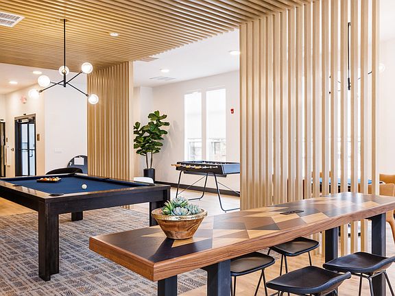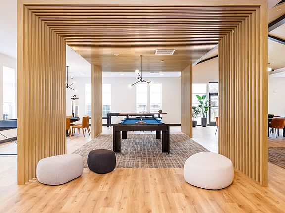 - Exterior features: 9' Ceilings, Arctic White Herringbone Backsplash, Coffee Bar, Crayon Corner, Custom Wine Storage, Direct Home Entry, Frameless Shower Doors, Game Room, Gray Shaker Cabinetry, Indoor & Outdoor Bars, Linen Storage, Luxury Plank Flooring, Modular Closet Storage, Movement Studio with On-Demand Technology, Multi-Sport Simulator, On-Site Maintenance, Outdoor BBQs & Firepits, Pet Friendly, Pet Spa & Dog Run, Private Garages Available, Resident Clubroom, Solar Window Shades, Stainless Steel Appliances, TV Lounge, White Full-Height Tiled Wet Walls, White Quartz Countertops