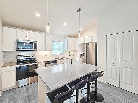 Experience the perfect blend of style and comfort in this beautifully upgraded 2023-built home, situated on an oversized corner lot with no HOA. Thoughtfully designed with standout finishes, this home offers a contemporary aesthetic that feels both inviting and refined. Step inside to find durable luxury vinyl plank flooring that flows seamlessly throughout. The upgraded fanlight fixtures and enhanced lighting add a touch of sophistication, creating a warm and welcoming ambiance. The kitchen features sleek quartz countertops, a stainless-steel refrigerator, beautiful cabinets, a pantry for added storage, and a charming window that fills the space with natural light. Perfect for entertaining and gathering, this space is both functional and stylish. The spacious primary suite offers a peaceful retreat with a large walk-in closet and a spa-inspired en-suite bathroom. Enjoy the convenience of a dual vanity sink, floor-to-ceiling custom tile, and a shower faucet designed for relaxation. Throughout the home, upgraded interior doors add an elegant touch, enhancing the custom feel. Located just a short distance from the beach, shopping, and schools, this move-in-ready home offers everything you need and more. Don’t miss this.