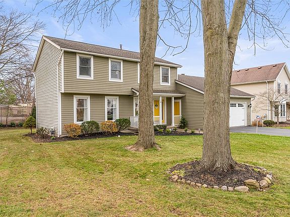 Look for further than this Meticulously Maintained Builder's Model in this High Desirable, Rarely Available Quiet Cul-De-Sac Neighborhood Setting. Original Owners Have Lovingly Adored and Cared for this Spacious, Dreamy Home with 3 Generously Sized Bedrooms, 2.5 Bath, Family Room w/Warm & Inviting Gas Fireplace (converted from wood burning when built). Gorgeous Setting w/Mature Trees Conveniently Located to Schools, Village, Highways, Parks, Shopping. Newest Updates include New Furnace & A/C 2025 & New Patio Sliding Door w/Built in Blinds (2022). Primary Ensuite w/Large Bedroom, Huge Primary Bath w/Whirlpool Tub & Shower and Amazing Walk-In Closet. Main Bath w/Tub/Shower Combo is also Generously Sized. Two Spacious Bedrooms Complete the Second Floor, Offering Comfort and Charm Throughout. Well-Equipped Kitchen w/Island Offering Seating, Access to Huge Two-Tier Deck and Open to Family Room w/Bay Window. All Rooms Flow Seamlessly and Create an Exceptionally Warm, Inviting Atmosphere, Perfect For Both Family Living and Entertaining. Immaculately Maintained, this Home Sparkles and Shines Throughout. Laundry Currently in Basement but has 1st Floor Full Hook Ups in Closet Adjacent to Garage Entry/Hallway. Grey Entertainment Unit/Shelving/Cabinet in Basement to Convey. Delay Negotiations w/Offers due Tuesday, 12/9/25 @ 12 pm.