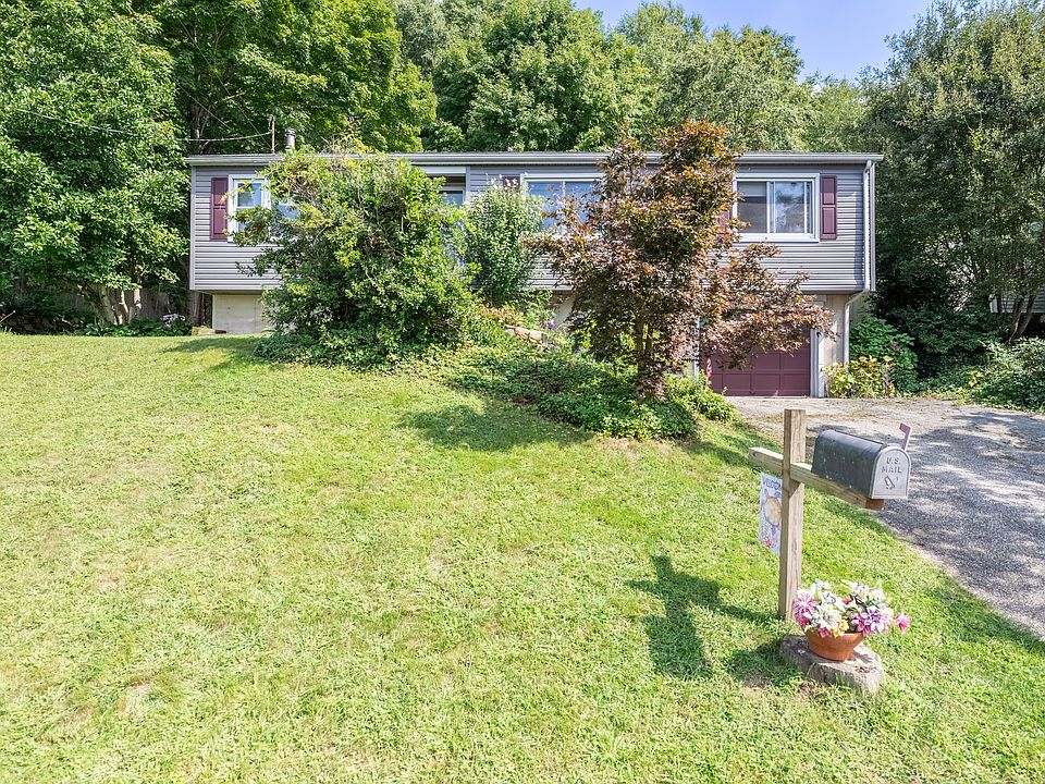 Back on market, NOT due to inspection findings. Bright, spacious and charming Ranch style home on a quiet, cul-de-sac street among newer, higher priced homes. 3 beds and 1.5 baths, with a nice yard and dry basement, plus a 1-car garage. The main living area features an open concept with lots of natural light pouring in, nice views out the front and walks out to a large deck and yard in back. The kitchen offers quality wood cabinetry with ample storage, stainless appliances in good shape and breakfast bar beneath the bright skylight. Living and dining rooms sport beautiful engineered hardwood flooring, and there's a pellet stove on a beautiful surround, ready to help you save on heating bills. Bedrooms all have ceiling fans, and the primary bedroom has its own half bath. The dry basement works well for additional finished space or hobby etc, and you'll have a 1-car garage and a workshop, too! Roof is almost brand new (2019), Buderus boiler is newer and vinyl siding is in great shape. The deck is older and may need some repair, so FHA financing may not work. Home is being sold as-is but it's a great value, and fully move-in ready! Close to schools, shopping, parks and a great Route 8 commute! Come have a look!