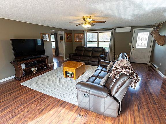 Fabulous Expanded Four Level Split boasts three bedrooms and two full baths on top level, spacious livingroom with pellet stove 2 +/= years young, three minisplits 1 +/- years young, spacious diningroom, eat-in kitchen with dishwasher, electric oven/range and granite countertop,2 hot water tanks, mid-level inlaw or teen suite with livingroom with propane stove, huge kitchen with refrigerator and stove, bedroom and full bath, separate utilities, sliding glass doors off livingroom leading to concrete patio 2 +/= years young, two sheds, huge fourth level basement, two car heated garage nesled on 9.52 acres in the country. Don't hesitate...