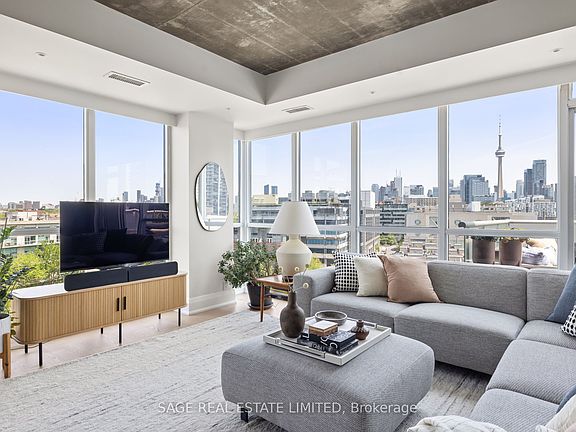 You know that feeling when you walk into a space and your shoulders instantly drop? That's what happens here. Maybe its the light pouring in from three directions, illuminating the texture and tone of wide-plank white oak floors. Or the calm, the kind that comes from being tucked at the end of the hallway, with no one above, and only the skyline ahead. This three-bedroom, two-bathroom corner suite wasn't remodeled it was completely reimagined as a personal home. A renovation done with patience, intention, and taste. Every drawer in the custom Wolstencroft kitchen was planned so nothing gets in the way. Appliances? Fully integrated, top of the line, including a 36 Miele dual-fuel range with six gas burners. And then there's the terrace: 300 square feet of completely open sky. No balcony above just a gas hookup for grilling, a water line for your plants, and space to breathe. With three walkouts living, office, and primary its designed for that perfect summer cross-breeze. Positioned at the end of the hallway with no suite above, the sense of privacy is exceptional enhanced by panoramic, unobstructed city views, with the CN Tower glowing at the centre of a dazzling cityscape at night. A second private balcony off the guest suite adds the kind of separation guests (and hosts) quietly love. The finishes? Thoughtful. Canadian-made lighting, sound-dampening drywall, built-in closets, and solid wood that makes everything feel grounded. Serene. Like the city exists outside your windows, not inside your walls. And the building? Boutique, beautifully maintained, and located in King Wests most refined stretch where restaurant openings happen weekly, and everything you love about city life is just steps or a streetcar away. This isn't just another condo. This is where you land when you're ready to live really well. (and ps: check out how low the condo fees are).