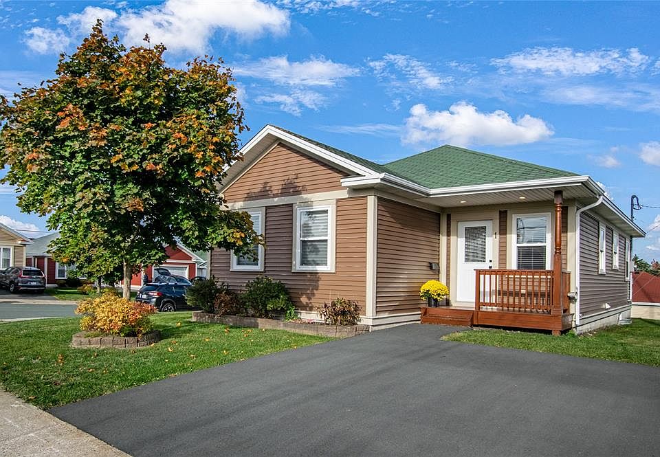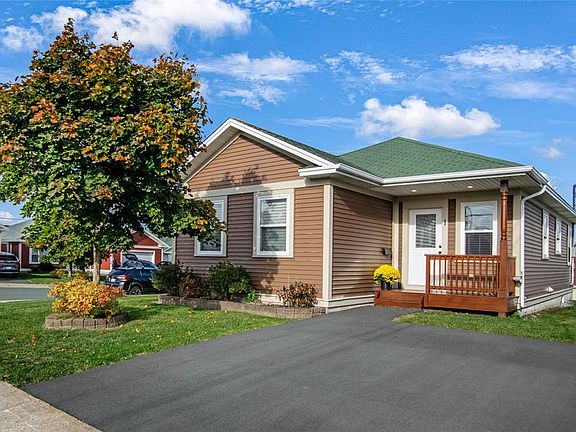 Pride of ownership is evident throughout this pristine 2-bedroom, 2-bathroom bungalow, ideally located on a beautifully positioned corner lot in the sought-after neighborhood of Clovelly Trails. Featuring gleaming hardwood floors and a functional, thoughtfully designed layout, this immaculate home welcomes you through an enclosed front porch leading into a spacious foyer and bright main hallway. The open-concept kitchen, dining, and living areas are located at the rear of the home, creating a warm and inviting space for both everyday living and entertaining. The kitchen is equipped with a large island, ample cabinetry, and generous counter space, while the adjoining dining and living areas are enhanced by large windows that fill the space with natural light and provide access to the rear patio. The spacious primary bedroom includes a walk-in closet and ensuite, while the second bedroom and main full bathroom provide comfort and convenience for guests or family. Designed with accessibility in mind, the home features wide hallways and door openings for ease of movement and convenient main-floor laundry. The undeveloped basement offers a blank canvas for future expansion or additional storage, complete with direct exterior door for easy access. Nestled in a quiet, adult living community, residents enjoy a low-maintenance lifestyle with lawn care and snow removal included in the affordable condo fee. Just minutes from shopping, dining, golf, and scenic walking trails, this property perfectly combines comfort, convenience, and carefree living.