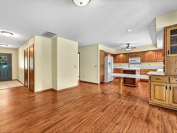 Charming home ideally situated on a corner lot in the Highlands of Bella Vista close to Loch Lomond. You will be amazed at the oversized living spaces in both the family room and kitchen area. The eat-in kitchen boasts updated appliances, a central island, a bar area, and a Culligan water softener—perfect for entertaining and everyday living. Enjoy year-round comfort in the expanded sunroom off the kitchen, complete with solar shades and a window unit that heats and cools. There is a dedicated office featuring built-ins. Step outside to the spacious Trex deck, offering extra storage underneath and surrounded by lattice for privacy.
