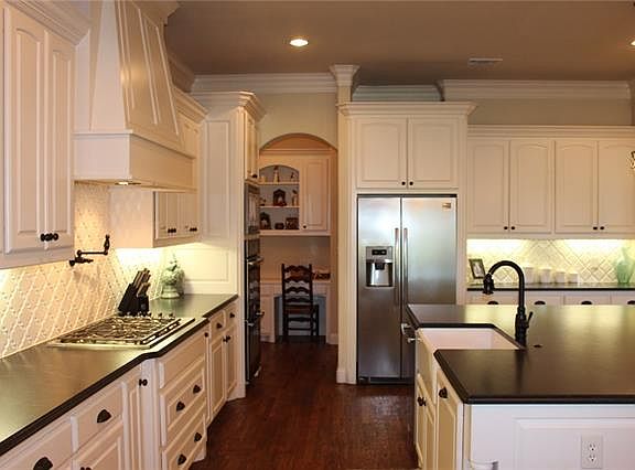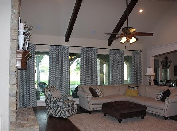 WELCOME HOME to your Stunning Custom home on the #6 tee box. Dry stacked stone exterior, circle drive, cedar garage doors, open floor plan with vaulted LR, surround sound, hand scraped hardwoods, and plantation shutters. Designer kitchen includes arabesque back splash, leathered granite, apron front sink, pot filler, & more. Enjoy gorgeous views of pond from the outdoor living; includes FP, built-in grill with granite area. This is a MUST SEE!!!!
