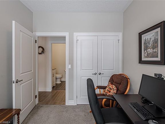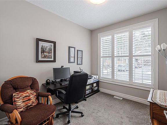 Welcome to 1 Sihler Woods, where luxury meets comfort in this stunning detached condominium! This home offers a double-car garage and a covered deck, perfect for relaxing outdoors. Step inside to discover high trayed ceilings, expansive windows, and a bright, open-concept layout designed for modern living. The gourmet kitchen features quartz countertops, a large island, and plenty of space for meal prep and entertaining. The living room boasts a cozy gas fireplace, while the dining room is ideal for hosting family gatherings. The spacious primary bedroom includes a walk-in closet and a spa-like ensuite with double sinks, a glass walk-in shower, and a separate tub. An additional main-floor room serves as an office or second bedroom, and the convenient laundry room completes this level. The finished basement adds even more living space with a large recreation room, a second gas fireplace, a bedroom, a 3-piece bathroom, and ample storage. Located in the desirable community of Simcoe, this home combines luxury finishes with functional spaces, making it perfect for downsizers or families alike. Don’t miss your chance to see this incredible property—schedule your showing today!