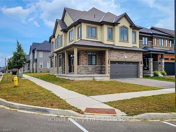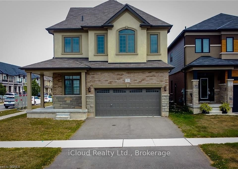 Welcome to 1 Sleeth Street, Brantford - a beautifully upgraded detached home nestled on a spacious corner lot in the prestigious Brantview Heights Community. Boasting over 2400 square feet of Open Concept living spcae, this 4 bedroom, 2.5 Bathroom features a striking stone, stucco and brick exterior that exudes curb appeal. Inside, you'll find soaring 9ft ceilings, feature walls, abundant natural light and a cohesive modern design throughout. The main level offers a seamless flow ideal for entertaining, while the upper level includes four generously sized bedrooms and a massive laundry room for added convenience. The primary suite is a true retreat, complete with a luxurious 5pc ensuite. The home also includes an unfinished basement, offering a blank canvas ready for your personal touches - whether its a home gym, media room or in-law suite. Conveniently located just minutes from Highway 403. This property is perfect for nature lovers and urban explorers alike. Standard light fixtures, window coverings and appliances are included, making this move-in ready gem an exceptional opportunity in one of Brantford's most sought-after neighbourhoods. Price to Sell.