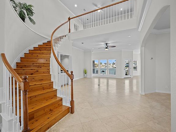 Elegant Waterfront Home in Prestigious Key Allegro, Rockport, TX Experience refined coastal living in this stunning two-story brick home, perfectly situated on a wide canal in the exclusive Key Allegro waterfront community of Rockport, Texas. Offering 3,015 square feet of beautifully designed living space, this residence combines timeless sophistication with relaxed waterfront charm. The lower level features Terrazzo tile flooring throughout, creating a warm and inviting flow that complements the home's elegant coastal style. The open-concept living and dining areas are ideal for entertaining, while expansive windows frame serene water views. Upstairs, rich pinewood floors add character and warmth to the spacious private quarters. This home offers three bedrooms, two and a half baths, a dedicated office, and an impressive family/game room perfect for gatherings or quiet hangout. Step outside to the large upper deck overlooking the wide canal, where you can enjoy evening breezes and breathtaking sun rises.  The three-car garage provides generous space for vehicles, storage, or a golf cart—ideal for quick rides to Rockport Beach, boutique shops, and fine dining just minutes away. With easy access to the bay by boat and surrounded by the best of coastal luxury, this home is truly a Rockport gem.          Come Live Your Beach Life!!