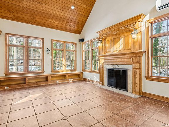 A true highlight, the tremendous great room showcases vaulted ceilings, beautiful oak moldings, a wood-burning fireplace, and a loft, creating an inviting space for gatherings large and small, with French doors leading to a sun-filled sunroom that enhances the home’s light-filled, open feel. The second level offers a primary bedroom suite with private bath and four additional spacious bedrooms. A full partially finished basement with wood-burning stove and outside entry provides additional flexible living space.
