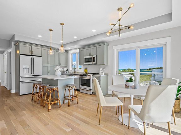 Set just outside of Mattapoisett Village, this magnificent coastal retreat offers deeded beach rights and sweeping views of the harbor and Molly's Cove from nearly every vantage point. Walls of glass frame the breathtaking scenery, while multiple decks create a seamless connection to the outdoors. The Chef's kitchen features modern appliances, a spacious island, and abundant cabinet space, with an open layout flowing into the light-filled dining and living areas. Two well-appointed bedrooms with water views and two full baths complete the main level. An elevator leads to the top floor, where the luxurious primary suite enjoys panoramic views and direct balcony access. Complete with a lavish bathroom, walk-in closet, sitting room with kitchenette, and a second large balcony, it provides the perfect private retreat. Additional amenities include a whole-house generator, solar energy, irrigation, an attached garage, and outdoor shower. This South Coast gem is ready to be enjoyed!