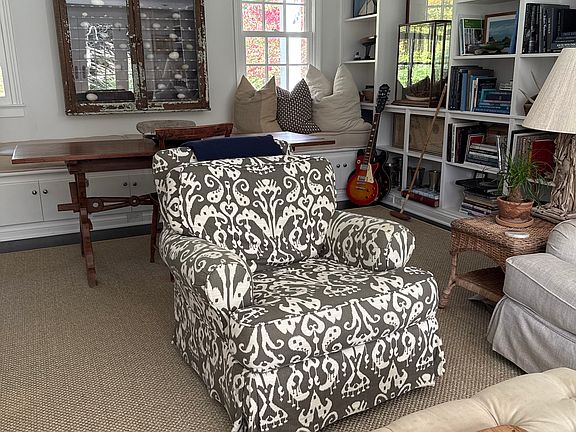 Third bedroom has a lovely view of the back garden and pond. Pass thru sitting area with loads of books and a comfortable chair to relax and read.