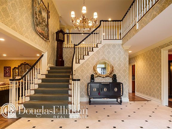 Stunning gated estate nestled on nearly 10 breathtaking acres offering total privacy and serenity. Situated on a lovely cul-de-sac and only 45 minutes from Manhattan, this Colonial has been thoughtfully designed with high end finishes and attention to detail. The interior features approx. 9,200 sqft with 5 bedrooms, 4 full baths, 2 half baths, a two-story grand entry foyer and center hall, state-of-the-art gourmet kitchen with butler's panty and breakfast room, Great room, sun room, luxurious master suite, library/billiard room, formal living room and dining room, 3 fire places, and 3 car garage. The lower level is completely finished & built-out to include an enormous recreation room, home theater, & tons of storage space.Outdoor amenities include an 80 foot pool w/ spa, waterfall, lazy river, all-weather tennis court, & large patio that is easily accessible from den, billiards, and breakfast room.The gorgeous and sprawling landscaped grounds are beyond compare.
