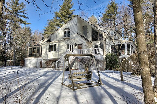 A peaceful setting and lots of privacy could be yours in this delightful four bedroom Contemporary style home! Dramatic cathedral ceilinged living room opening to wonderful screened porch with leaded glass French doors and sliders leading to the spacious composite deck to the front of the home and opening to the eat in kitchen with peninsular, the flow continues to the step down den area with French doors adjoining lovely sun room and on into the cathedral family room with floor to ceiling wood burning fireplace. 1st floor bedroom, laundry and 1/2 bath completes 1st level. Master bedroom w/cedar walk in closet, mstr.bath w/whirlpool tub & pedestal sink, two other good sized bedrooms, full bath and balcony overlooking wonderful living room area completes this 2nd level. Exterior grounds include a tucked away Gazebo, a shed to store your tools & a fenced in back yard area as well as another fenced garden area. Driveway lanterns are auto activated, & configured for portable generator.