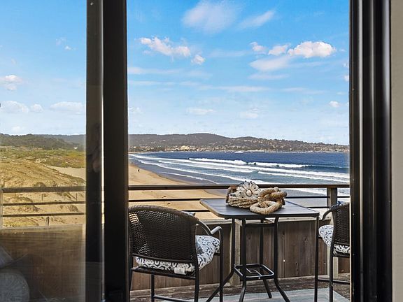 Stunning beachfront location with Monterey Bay, dune, and city views! Large 1 bedroom condo by the sand and sea boasts TWO decks! The front deck off the living room overlooks the pristine Monterey Bay, perfect for enjoying your morning coffee as you look out at the ever-changing marine life. On any given day you can see dolphins near the water's edge or whales a little further out. The back deck off the bedroom's sliding glass door is perfect for sipping evening wine, gazing at the dunes and down the beach to the marina, Fisherman's Wharf, and Cannery Row. At night, the twinkling Monterey city lights create a breathtaking show above the bay. The views from this condo are marvelous, both inside and out! Hear the surf crashing, smell the fresh salt air. Luxury complex includes 2 heated pools, fitness room, club rooms, game rooms, saunas, spas. Come home to your sanctuary by the sea.