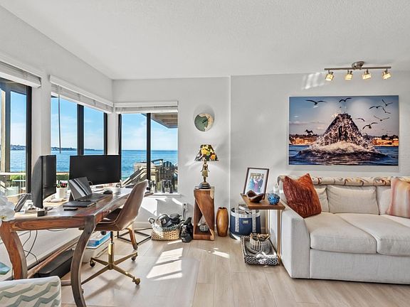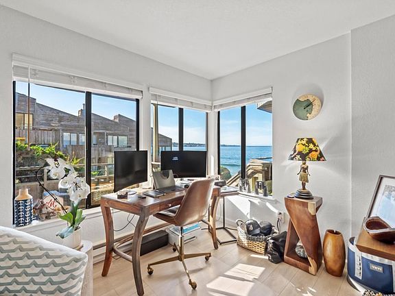 Awesome ocean and white-water views from Monterey Plaza Hotel, Canary Row, Aquarium to Lovers Pt! Welcome to coastal living where sand and sea are just steps from your door. Light-filled ground-level home offers an exceptional location within the coveted Ocean Harbor House community, directly on Del Monte Beach and near the Monterey Bay Coastal Trail. The open living area features large windows that look out to a relaxing patio with peaceful ocean and white-water views, perfect for taking in the sound of the surf. The updated kitchen includes modern appliances, quartz counters, and a breakfast bar for casual dining or entertaining. The spacious bedroom provides generous storage, and the bath showcases clean finishes. Enjoy resort-style amenities: only steps to the hot tub, pool and fitness room. There is also a clubhouse and gated parking with assigned space and storage room. HOA covers exterior maintenance, water, garbage, and common-area care for a truly low-maintenance lifestyle. Just minutes to Cannery Row, Fishermans Wharf, downtown Monterey, dining, golf, and recreation. Ideal as a full-time residence, weekend retreat, or investment in one of Montereys most desirable beachfront communities. Available furnished if desired. Assumable loan options to qualified buyers.