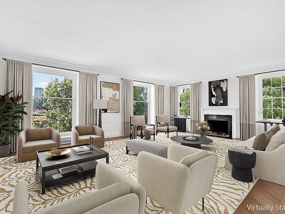 Enormous home on one floor! Spectacular river views. Approximately 5600’! Stunning prewar building. As a grand country manor, this 6 bedroom is sprawling with high ceilings, huge windows, beautiful prewar details, and two fireplaces.