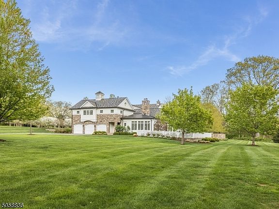 A private, tree-lined road leads to this magnificent Colonial set on 6.8+ acres in a very desirable Harding location. Constructed by John McFayden, this fine country estate is sophisticated, yet comfortable, with a well-designed floor plan where entertaining and everyday living are equally served. From the moment you enter, architectural features and designer touches are apparent. The grand, two-story foyer with an elevator servicing all three floors, is a wonderful introduction to the home. Well-appointed gathering spaces include the formal living room with a coffered ceiling, stunning gas fireplace, and two sets of French doors to the gorgeous bluestone patio. Noteworthy entertaining space is on hand in the dining room with custom molding details and a gas fireplace flanked by built-ins. Both are ideal for large parties or intimate get-togethers. A wonderful combination of beauty and function, the chef's kitchen features sparkling white cabinets, granite countertops, double islands, and professional-grade appliances. The separate breakfast area has a large sitting room with built-ins. The flow continues to the family room. This sun-filled room has French doors to the patio, a gas fireplace and access to the sunroom with three walls of windows to enjoy the peaceful surroundings. Conveniently located nearby are the laundry room, and mudroom with a walk-in pantry and a powder room. The private wing of the first floor includes the master bedroom suite with two lavish baths and two custom designed walk-in closets. A hidden passage way leads to the private home office with impressively crafted woodwork. A home gym and another powder room are bonuses to the first floor layout. The second floor features three en suite bedrooms, an office with a sitting area, a fourth full bath and a spacious bonus room suitable for a fifth bedroom. This stately home is complemented by lush outdoor space including mature trees supplying dappled shade and an open, level yard. The expansive covered porch leads to the bluestone patio, both perfect spots for festive entertaining or relaxation.