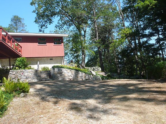 Nestled in the desirable Candlewood Lake Community of Hollywyle, 1 Sylvan Road offers a rare combination of privacy, very little traffic, lake charm, beach access and a boat dock slip (additional $200 a year). Set on a secluded multilevel lot, this 3 bedroom, 1.5 bath home is part of a private lake association that includes transferable multi-year dock rights, a beach picnic area and playground, perfect for enjoying the lake lifestyle all year long. The home's new roof (2018), ample levelish parking for 8-10 vehicles (unheard of in lake communities) and good sized decks off both the kitchen and living room make outdoor entertaining easy and enjoyable along with seasonal lake views. Inside, the home features an oversized step-down living room with 10' beamed ceiling, a stunning fieldstone wood burning fireplace and two sets of sliders that bring the outdoors right into the living room. The kitchen features a breakfast bar for 5 and a separate seating area for 6-10 guests. The home features three bedrooms including a spacious primary suite with crown molding, double closets, and a private half bath offering ample space to expand into a full bath if desired.The main bathroom has been thoughtfully updated with modern finishes including a granite countertop.Whether you're looking for a weekend retreat or a full time residence this home is the perfect balance of comfort/convenience and Candlewood Lake charm.Large lot which has street frontage on Sylvan Road as well as Candlewood Rd