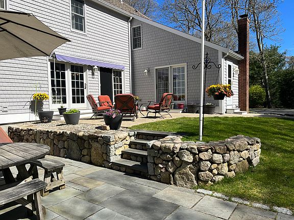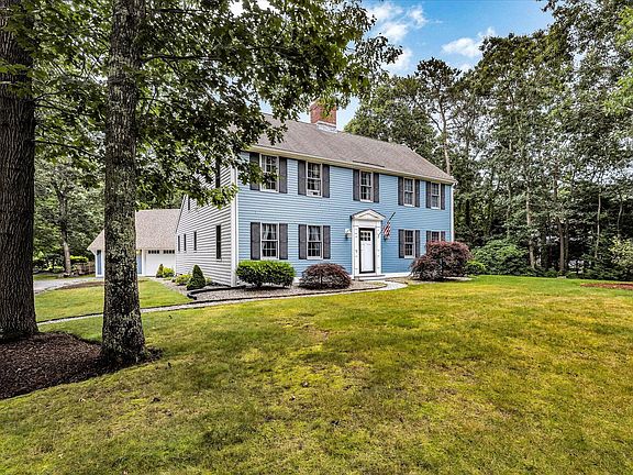 Recently price improvement. Plus a new bike pathway is underway & the Title V septic updates are done (with fresh loam & seed), this Cape Cod Saltbox has neutral decor reminding you of sandy beach dunes, coastal charm & a buttery soft Pottery Barn palette. With Sea Cap'n newel post replica, Double center ''Good Morning Staircase'', a gigantic center chimney fireplace & newly redone flagstone patio with built in firepit. Abutting conservation in a terrific location at Jacob's Farm Village of East Sandwich. A commuter's dream closeby major routes to day trip Boston or the Islands This Charming & one-of-a kind home with detached carriage house/garage is nestled on a beautiful corner one-acre lot. As an added BONUS: additional 300 sf of finished space in lower level for extended family, music lovers AND a dedicated first floor office for YOU!! Ready for quick closing with optional furnishings.