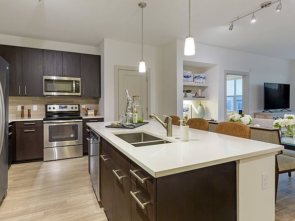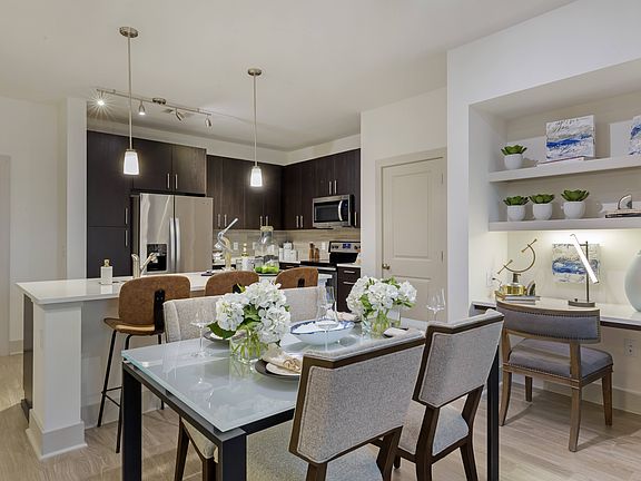 - Exterior features: BBQ/Picnic Area, Barbecue, Built in Computer Desks and bookcases*, Business Center, Catering Kitchen, Conference Rooms, Courtyard, Efficient Appliances, Energy-Efficient Lighting, Garden, High-speed Internet Ready, On-Site Maintenance, On-Site Management, Open living floorplans, Package Receiving, Peloton On-Demand and Yoga Space, Pet Park, Premium Granite and Quartz Countertops, Private garages and storage spaces available, Spa-like bathrooms with oversized soaking tubs, TV Lounge, Walk-in Showers and Dual Vanity Countertops*, Wood style flooring in living and dining areas