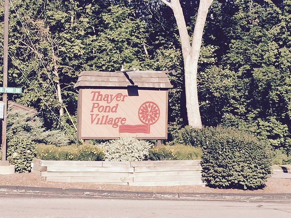 Absolutely immaculate one-bedroom, first floor unit in the desirable Thayer Pond Condominium complex! The living room and dining room were recently painted. The bathroom flooring, tub and vanity were upgraded approximately 7 months ago. The bedroom window, the living room slider, the kitchen counters and kitchen appliances have also been upgraded! The water heater was replaced approximately 3 years ago as well! The very large living room is open to the dining area and also features sliders to your own very private patio! The gorgeous, recently remodeled pool area is just a short walk away! The deeded parking spot is very close to the walkway (space #169)! Low monthly condo fee of $223 per month! There is nothing to do but move in and enjoy! Showings start immediately!