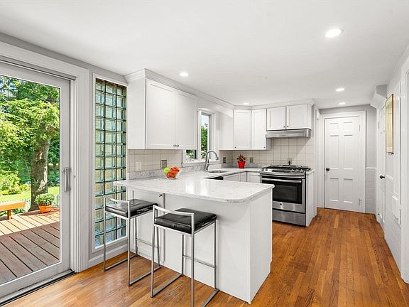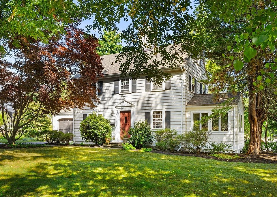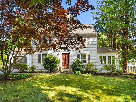 Nestled in the highly sought-after Cliffs neighborhood, this classic Colonial on a cul-du-sac blends updated comforts with a prime location and direct access to Wyman Cove beach. The attached garage opens into a cozy kitchen, featuring sliding doors that lead to a spacious deck with views of the gardens, and the lawn stretching toward Wyman association common area. The dining room boasts charming details, while the front-to-back living room offers ample space for entertaining and relaxation. Adjacent to the living room is a bright sun porch, providing additional living space and an ideal retreat for all seasons. Upstairs, the traditional layout continues with a generous primary bedroom, complete with built-ins and a walk-in closet. The recently updated bathroom, along with two additional bedrooms, rounds out the second floor of this inviting home. Plenty of room for expansion on the lower level offering many possibilities for the use of a home gym, entertainment area or home office.