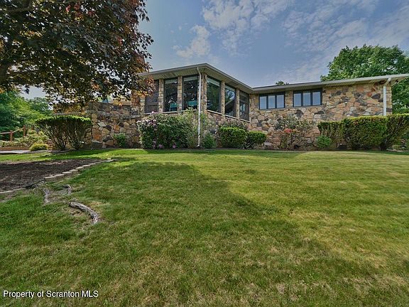 One of a kind Dunmore home at the base of Mt. Margaret and a 5 minute walk to Lake Scranton, that features a spacious living room with vaulted ceilings displaying an 18th century chandelier, crown molding throughout, remodeled bathrooms, and so much light coming from all the oversized windows in the house. Pictures cannot capture the incredible views that are seen from almost every room in the house and the feeling of complete awe when you walk in the front door to see the white marble fireplace and brand new kitchen with every high end feature & appliance you could ever want. Perfect for entertaining inside or open up the glass doors to step out onto the beautiful stone patios overlooking the mountains and backyard pool plus don't forget the bar and family room in the lower level for even more space! Make your appointment today before this gem is gone!