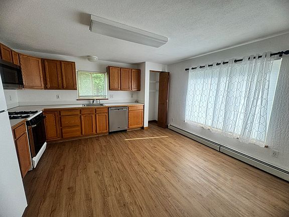 Spacious 1 bedroom bungalow with a large eat-in kitchen. Living room with slider access to good-sized wooden balcony. Bedroom is oversized with full-wall closet. Laminate flooring throughout first floor. L-shaped lower level is partially finished with concrete flooring. Washer and dryer included (as-is). Walk-out to back yard. Wooded corner lot; shed available for tenant use. Pet considered for well-qualified applicant; additional monthly fee applies $40/dog, $25/cat. Tenant pays for all utilities.