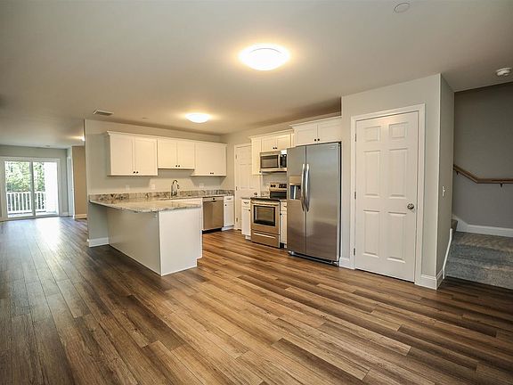 Welcome to Trail's Edge Common! This new Peterborough condominium community is breaking ground! Offering 3 bedrooms, 2.5 baths, first floor owner suite and attached one-car direct entry garage - this desirable unit is the best value for new, energy-efficient construction in the Monadnock Region. Brand new units are underway and available for occupancy September 2023. Enter through the welcoming front portico into a spacious open concept kitchen/dining area, from there the living room opens to the back patio. The first floor also features a powder room, utility room with washer and dryer, and a master bedroom with ensuite bath and walk-in closet. The second floor has two additional bedrooms, a study, and a full hallway bath. A single-car garage and additional off street parking complete each unit. Top-quality construction featuring impressive soundproof and fireproof walls between each unit make your safety and comfort a priority. Energy efficient Hyper heat systems offers both warmth and central AC. Just a short distance to ConVal High School and Monadnock Community Hospital, this neighborhood offers quiet living only minutes away from historic Peterborough center, offering many restaurants, shops, and cultural activities. Act now to reserve your unit. *All photos are of existing units, new units will have the same floor plan and similar finishes. *Pending Transfer of Title and AG Approval.