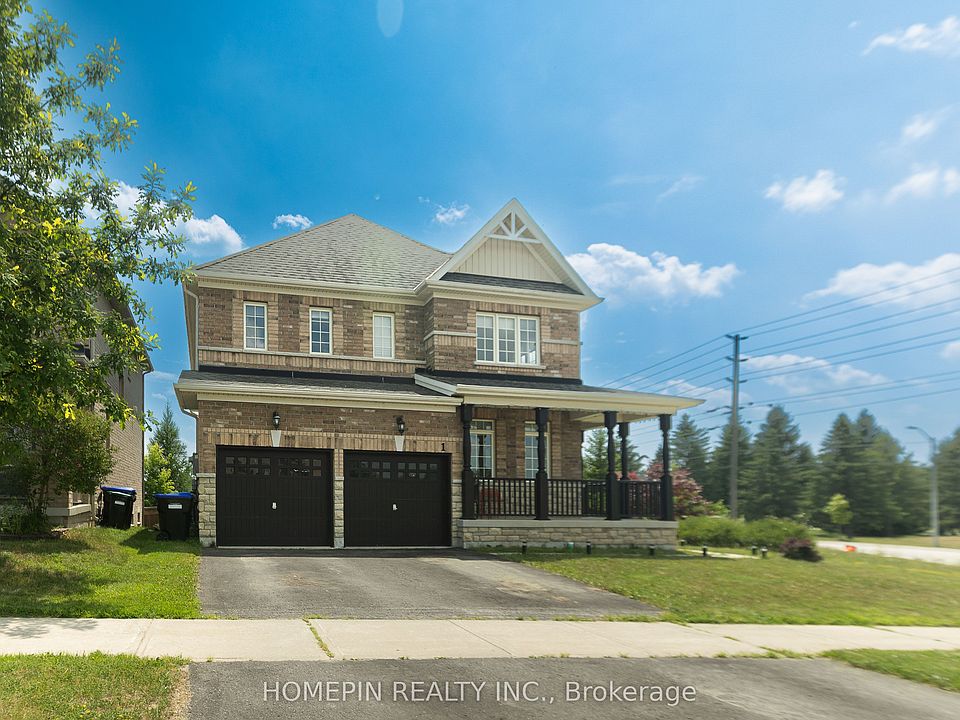 Welcome to 1 Treetops Blvd A Stunning Family Home in Allistons Sought-After Treetops Community!This beautiful upgraded 4-bedroom, 4-bathroom home sits on a premium corner lot backing onto a serene pond and the Nottawasaga Golf Course. Offering nearly 3,000 sq ft of living space, this home features a double-door entrance, parking for 6 cars, and a bright open-concept layout perfect for family living. Enjoy beautiful sunset views from the wrap-around porch. The main floor boasts 9 ft ceilings, hardwood and ceramic flooring, a cozy family room with gas fireplace, and separate living and dining areas. The spacious kitchen includes granite countertops, stone-glass backsplash, stainless steel appliances, and a walkout to a fully fenced backyard with stone wall accents. Upstairs offers a large primary suite with a 5-piece ensuite and walk-in closet. The second bedroom also features its own 4-piece ensuite, while the third and fourth bedrooms share a Jack-and-Jill bath. All bedrooms come with walk-in closets. Other highlights include main floor laundry, an attached double garage, and an unfinished basement with look-out windows and in-law suite potential. Recently painted inside and out, this home is move-in ready! Located just steps to parks, trails, and the newly opened St. Cecilia Catholic School, and only minutes to Hwy 400, Nottawasaga Resort, Stevenson Memorial Hospital, shopping, and more.Don't miss this rare opportunity to live in a vibrant, family-friendly golf course community!