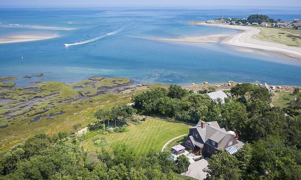 Panoramic views of ocean, rivers, sandbar beaches & salt marshes are the hallmarks of this enchanting coastal paradise. With stunning lines, 2"x6" framing & quality workmanship, this residence blends colonial & contemporary elements into a timeless showpiece. The 26 acre island is formed as a condominium of 13 units - its structure (with "exclusive use areas" & private natural barriers between homes) lends an atmosphere not reflective of your typical condominium. Much of the island is preserved & there are walking trails, sand beach, floating common dock and "yacht club". Moorings administered by the Town are nearby & subject to availability. Interior features include custom woodwork & flooring, soaring ceilings, spacious rooms & an open concept versatile flr pln. Walls of windows flood the interior space w/ natural light & provide amazing views of the surrounding landscape from within - blurring the lines between indoor & outdoor living. Beauty abounds year round! Truly Incomparable!