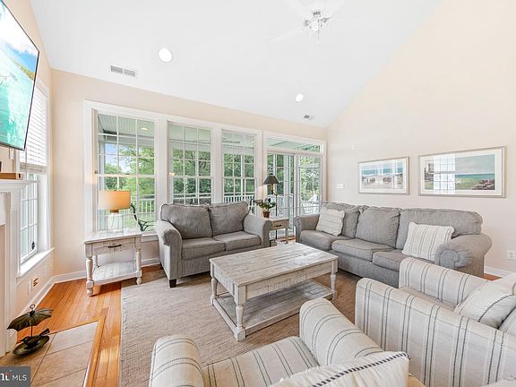 Gorgeous end-unit, coastal townhome in the sought-after community of Bear Trap, blending refined elegance with a casual charm for exceptional coastal living. Tastefully decorated and well appointed, this lovely home is being sold furnished. Turnkey, ready with a spacious open floor plan bathed in natural light, hardwood flooring, a spacious family room boasting a gas fireplace, soaring cathedral ceiling and expansive windows giving way to a lovely, screened porch and generous deck overlooking the rear open space behind the home. Guests will gravitate to the gourmet kitchen featuring crisp white cabinetry, solid surface countertops, a substantial island with breakfast bar and adjacent dining area offering additional places to entertain. Retreat to the main floor primary bedroom complete with walk-in closet and ensuite bath with dual vanity, stall shower and private water closet. At the front of the home of the foyer is the cozy living room, the perfect spot to gather and watch a movie or play games at the end of a day at the beach. A powder bath, tucked-away laundry space and interior access to the oversized garage complete the main level. Make your way upstairs to the sleeping quarters, where you will find a second ensuite bedroom and two additional bedrooms sharing a full bath, each side with their own private vanity area. As a resident of The Village at Bear Trap Dunes, you'll enjoy a rich and wide variety of amenities including The Village Pavilion: Indoor & Outdoor Pools, Fitness Center with Machine and Free-weight rooms, Whirlpool, Saunas and Community meeting room, Tennis, Volleyball, Basketball and Pickle Ball courts. Beach Shuttle stops are throughout the community. The Award winning 27-hole Championship Bear Trap Dunes Golf Course and Clubhouse with Restaurant, Pro-Shop and Banquet Facilities complete the amenity package. Truly resort style!