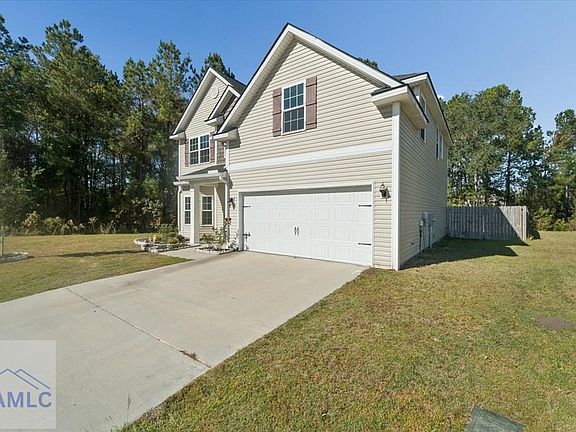 Tucked away at the end of a peaceful cul-de-sac in charming Flemington Georgia, One Turpentine trail welcomes you home! Step inside to an open foyer with wood laminate flooring flowing through the first floor and entry into the formal dining room with coffer ceilings ,bay window and judges panels.The kitchen shines with stainless steel appliances, including a side-by-side refrigerator smooth top range, built-in microwave, and dishwasher.Granite counters and tile backsplash make this a sand out! Stylish and functional open layout continues into the family room with accent wall adding character. A convenient half bath with pedestal sink is off the foyer . Upstairs , the expansive master suite with vault ceiling, and separate sitting room makes a great place to relax and unwind. The ensuite bathroom offers double sinks, with crisp white cabinetry, a relaxing garden tub and glass enclosed shower , and generous walk-in-closet. Three additional spacious bedrooms with ample closet space for storage and organization. Step outside from the family room to enjoy your covered back patio overlooking a private fenced backyard. One Turpentine Trail is not just a house- it is a place to feel at home and make memories for the years to come!