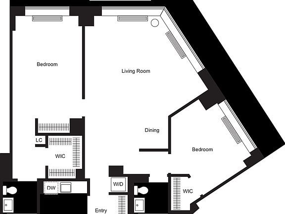 Corner 2 Bedroom, 2 Bath featuring northern exposure with Union Square Park views, in-home washer/dryer, plenty of closet space, upgraded strip wood flooring, solar shades and upgraded stainless steel appliances.