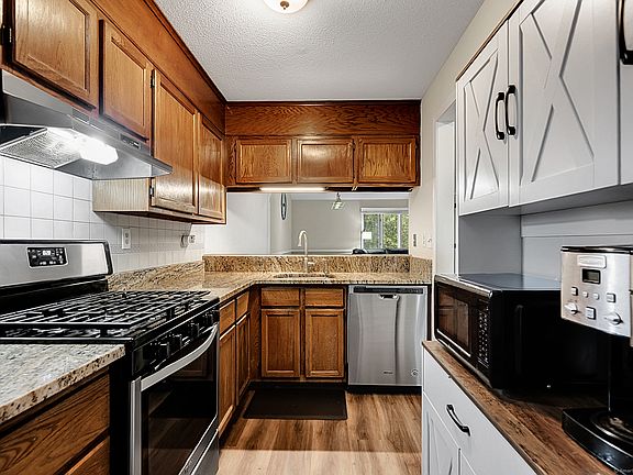 Private deckSoaring cathedral ceilingsBreakfast barModern kitchenPlenty of natural lightLightly wooded backyardNewer stainless steel appliances