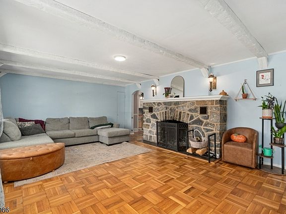 Gracefully maintained and thoughtfully updated, this charming 3-bedroom, 2-bathroom Ranch is nestled on a private corner lot and welcomes you with a classic rocking chair front porch. Inside, the living room is warmed by a striking stone fireplace, complemented by parquet wood flooring, newer windows, and stylish ceiling fans throughout the home. The spacious bedrooms offer comfort and tranquility, while both full bathrooms have been tastefully updated. The full-service kitchen features sleek stainless-steel appliances, granite countertops, and flows seamlessly into a dedicated dining area. French doors open to a cozy family room, perfect for gatherings and relaxation. Step outside to a fully fenced backyard oasis, complete with a paver patio, a serene stone fire pit area, lush gardens, and a convenient storage shed. The partially finished basement expands the living space with tile flooring, two versatile recreation rooms, a cedar closet, and generous storage. The oversized two-car garage provides additional storage and utility, rounding out this inviting and well-appointed home.