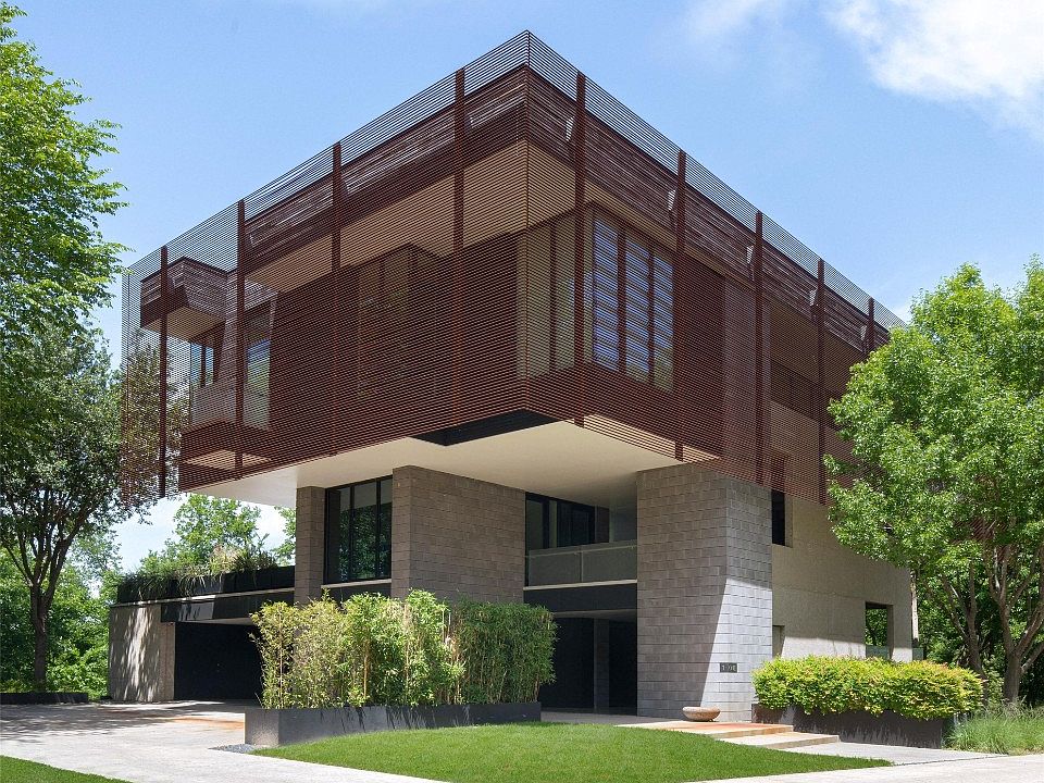 Designed by Internationally known Tod Williams Billie Tsien Architects & featured in Architectural Digest, this home is an exceptional work of art. Incomparable Design of Steel + Glass+ Concrete floating above the everyday in this Modern Treehouse. It is ordered vertically & the main, 3rd level floats above other two. The distinct 3rd level red iron sun baffle is as beautiful as it is functional in the TX heat & the cantilevered design gives shade to 2nd & 1st levels while allowing full natural light for art collections. Sunset facing pool uniquely rests among the treetops as does the outdoor kitchen & seating areas. Main living is on the third level & features the master suite, office, gourmet kitchen, living & dining rooms. This high-end custom home is anything but ordinary. Bring your most discerning buyers!