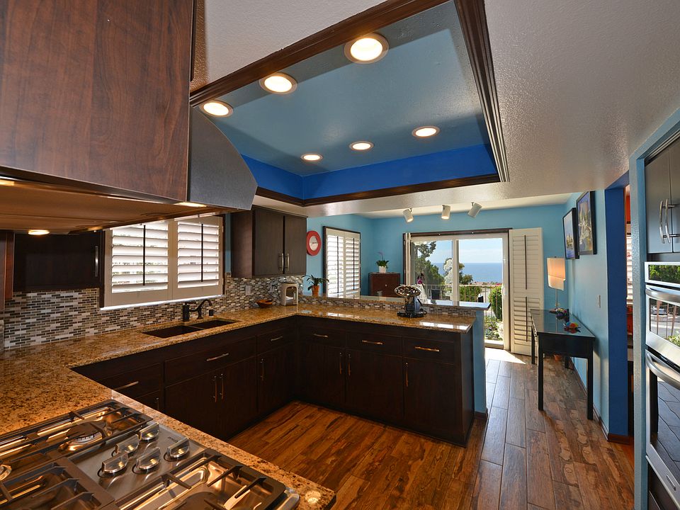 "VILLA CAPRI" Gated community. Remodeled ocean view townhouse. 3Bedrooms, 2.5 Bathrooms plus office/den. Upstairs includes 3 bedrooms. Specious living-room w/fireplace and cathedral ceiling. Gourmet kitchen has granite counters and tiled backsplash and cabinets. Master suit has a fireplace and wood floor. The livingroom features fireplace, wood floors, direct access to a large ocean view patio. This community has pool/spa.Near Golden Cove Center, Terranea Resort, and trails. 2 car garage with storage.