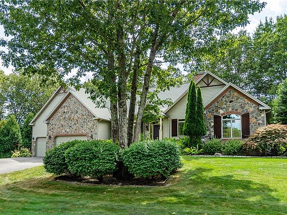 In Smithfield’s Limerock, this single-level 4-bed, 2.5-bath luxury ranch lives like a private resort. An airy great room centers on a stacked-stone gas-insert fireplace with custom built-ins. The showpiece kitchen dazzles with a massive island, new quartz counters, custom cabinetry with matching hood, refinished Brazilian-cherry floors & a large pantry, & opens to a dining room crowned by a Swarovski chandelier, built-in hutch & solar-tinted windows. A separate hall hosts two bedrooms & a full bath. The serene primary suite elevates daily routine with a spa bath—air-jet tub with Brizo fittings, Tere-Stone shower & heated marble floor—& a new double walk-in closet. Practical luxuries include a mudroom built-in, laundry & coat closet, & a heated three-car garage with LiftMaster openers, Detroit Radiant heater & tailored storage. Outdoors is the destination: a composite deck to an alfresco lounge with brick fireplace & built-in grill, then a sweeping heated saltwater pool terrace on nearly an acre. The finished lower level adds a generous sitting area, full bath, kitchen/laundry & storage, plus an oversized bedroom/office addition with vinyl flooring & LED lighting—ideal for guests, work or long stays. Modern systems shine: high-end Baldwin locks, ductless mini-splits with central air, whole-house generator, sprinklers, new fencing, LeafFilter gutters, powered shed & fully owned solar; per seller, electric bills are $0. Pure Profit. Elevated, turnkey & unforgettable.
